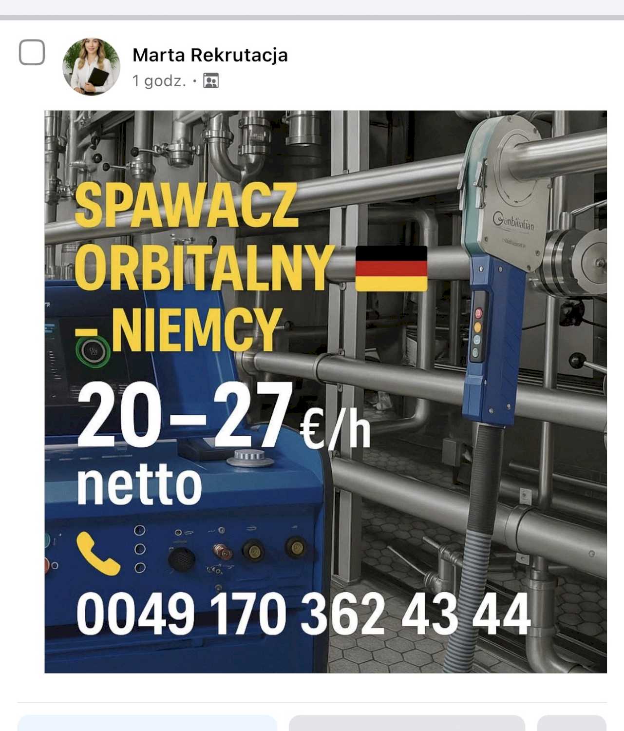Witam Spawacz TIG doświadczenie ponad 14 lat głównie branża farmaceutyczna i spożywcza ale też posiadam doświadczenie w spawaniu stali czarnej pod badania.