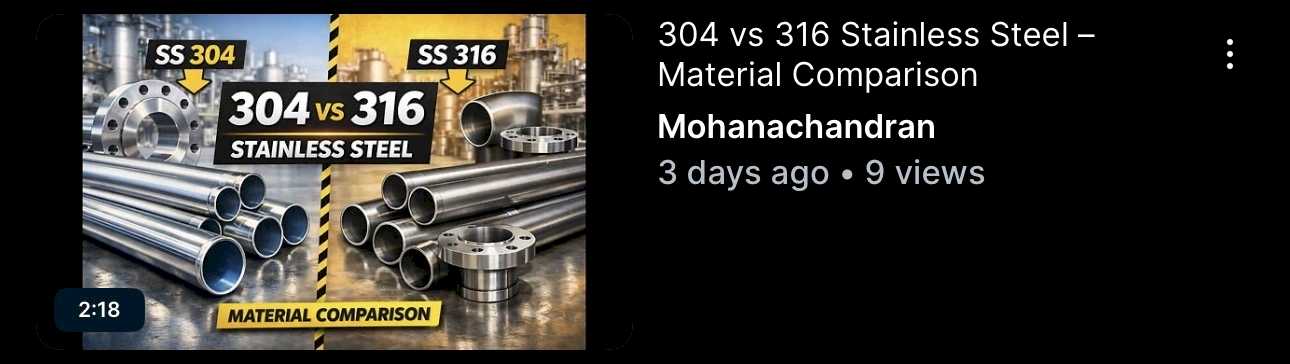 In this video, you will learn the real difference between stainless steel 304 and 316, two of the most commonly used grades in piping, tanks, pressure vessels, and fabrication work.