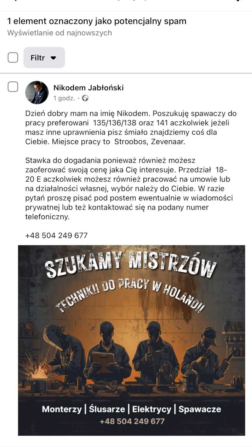 Dzień dobry mam na imię Nikodem. Poszukuję spawaczy do pracy preferowani 135/136/138 oraz 141 aczkolwiek jeżeli masz inne uprawnienia pisz śmiało znajdziemy coś dla Ciebie. Miejsce pracy to Stroobos, Zevenaar.
