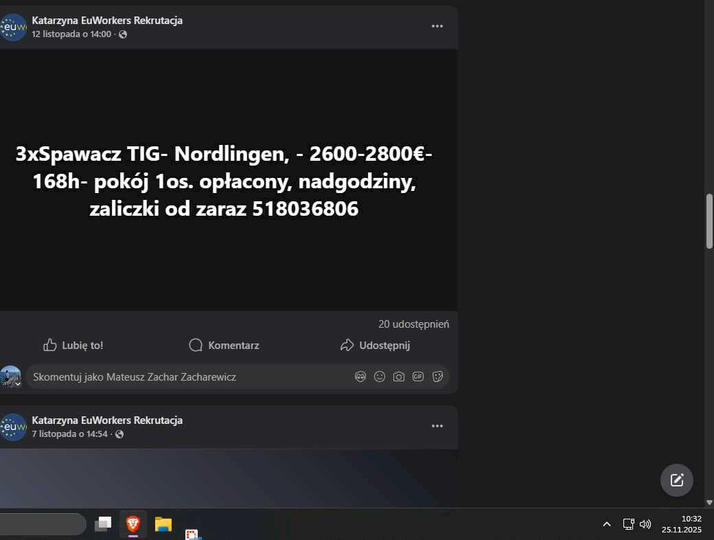 Młodzi niedoświadczeni spawacze uważajcie na ogłoszenia firmy EU WORKERS z Wrocławia.