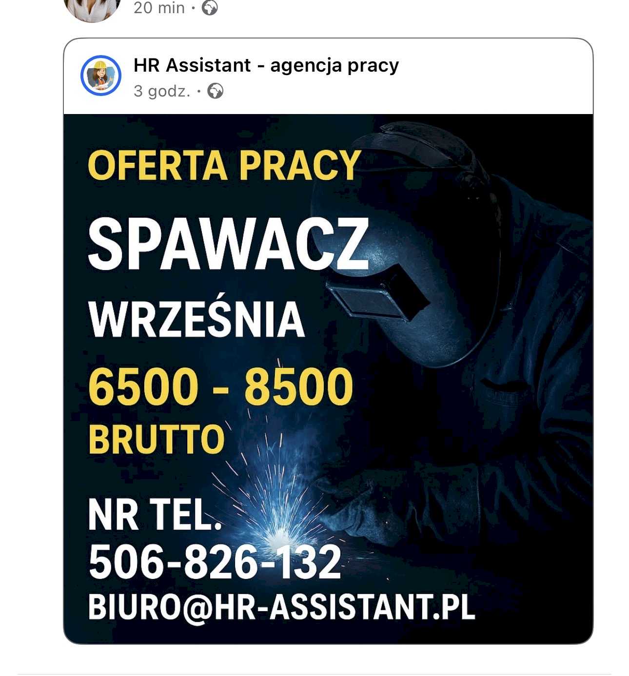 #polska #mag OFERTA PRACY SPAWACZ WRZEŚNIA 6500 - 8500 BRUTTO® NR TEL. 506-826-132 BIURO@HR-ASSISTANT.PL