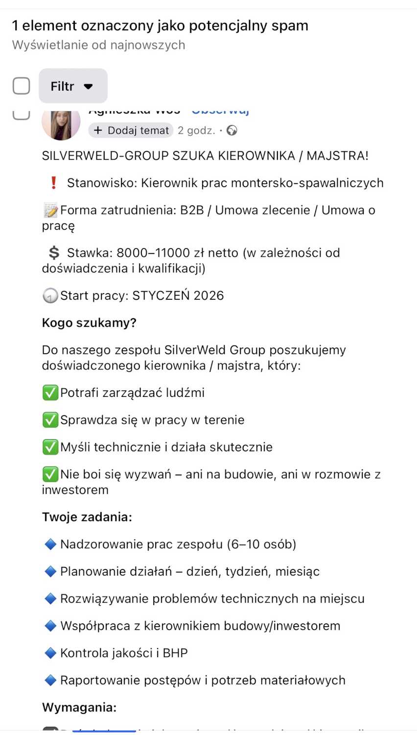 ❗️ Stanowisko: Kierownik prac montersko-spawalniczych