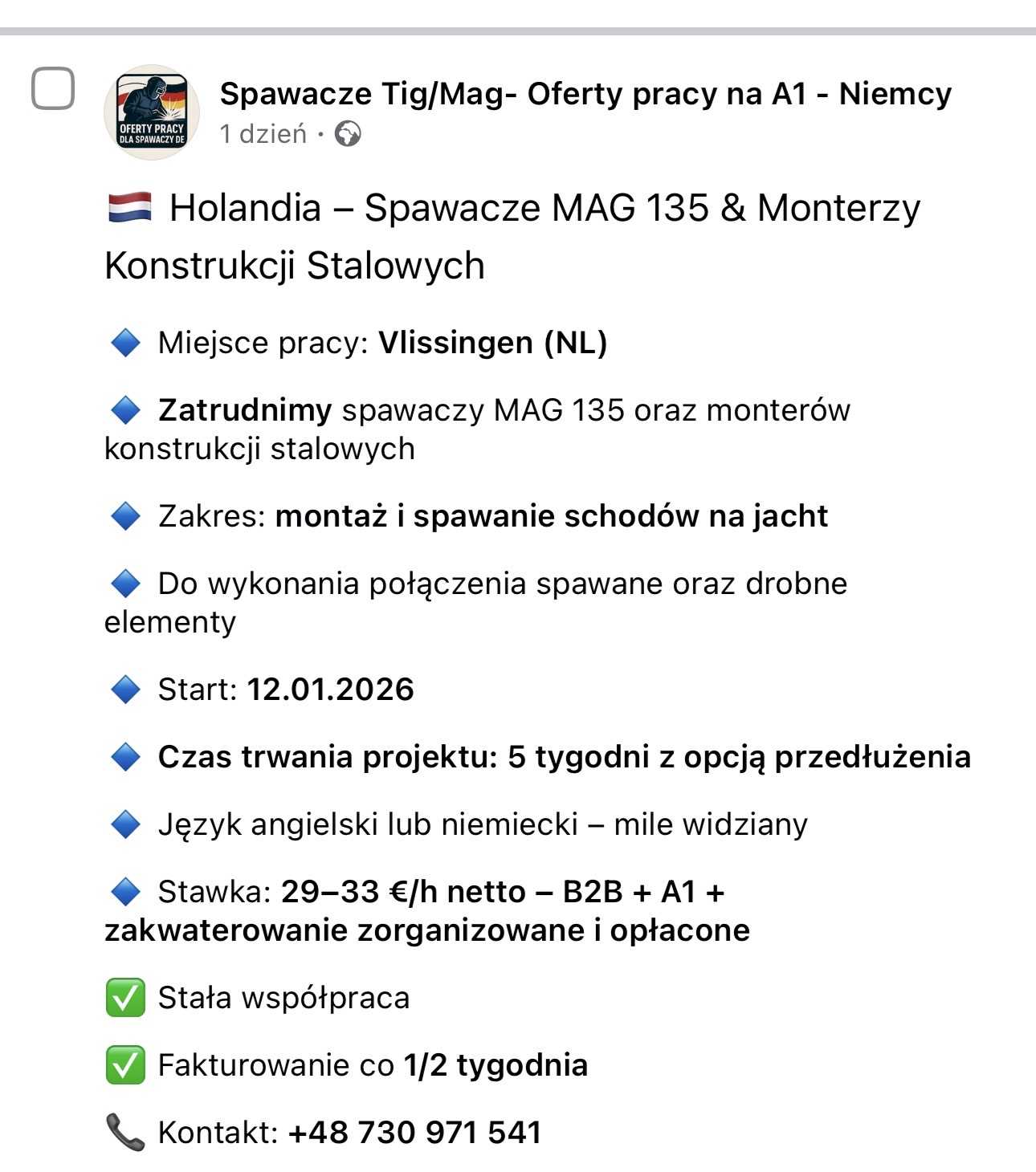 🇳🇱 Holandia – Spawacze MAG 135 & Monterzy Konstrukcji Stalowych