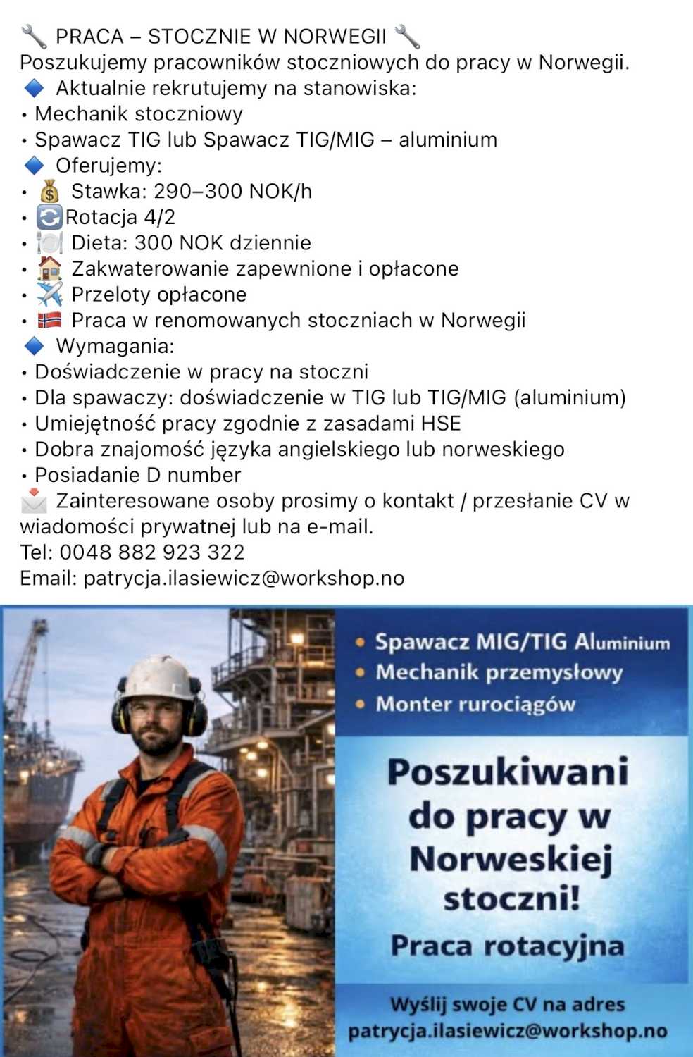 🔧 PRACA – STOCZNIE W NORWEGII 🔧