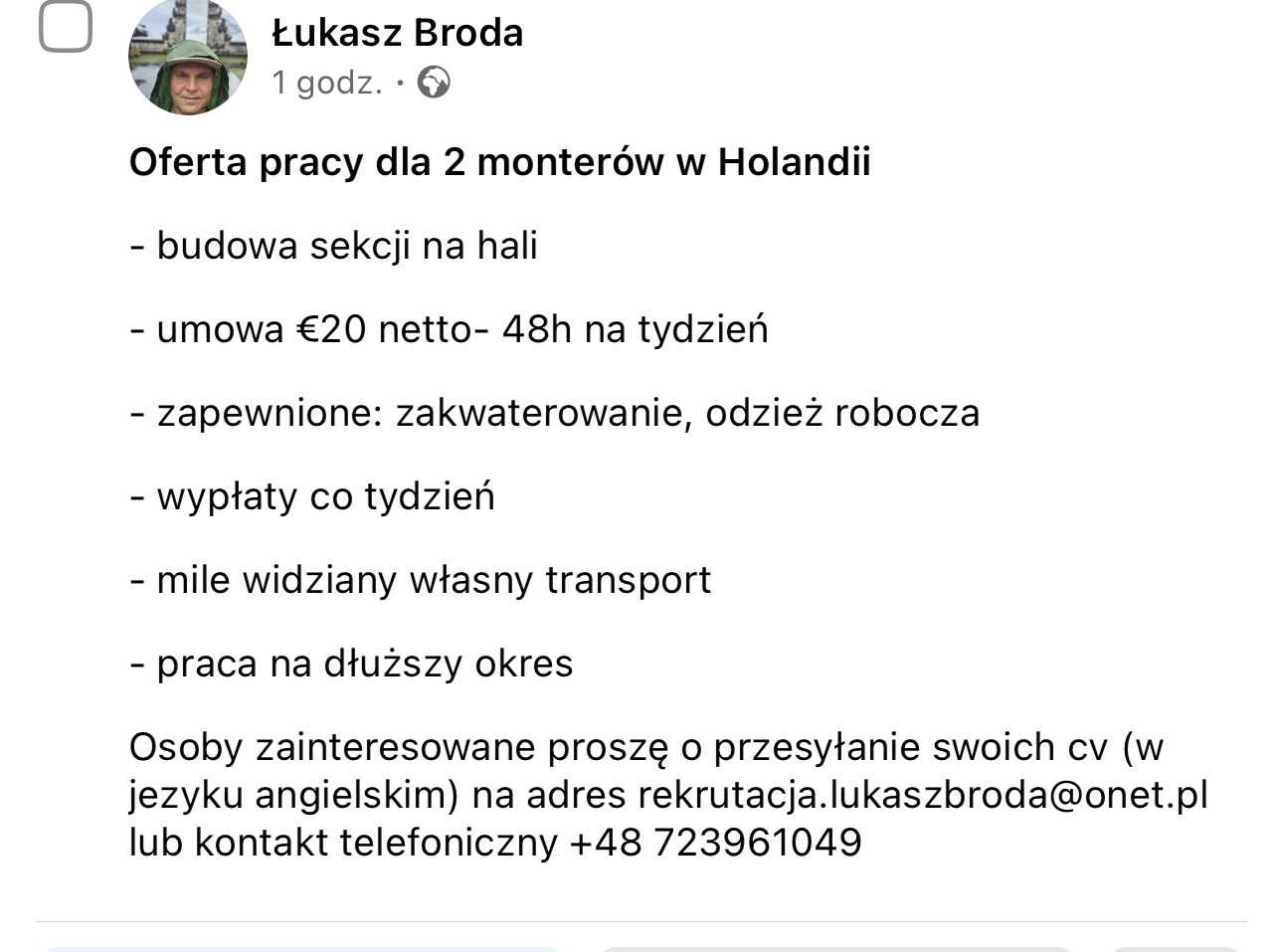 Osoby zainteresowane proszę o przesyłanie swoich cv (w jezyku angielskim) na adres rekrutacja.lukaszbroda@onet.pl lub kontakt telefoniczny +48 723961049