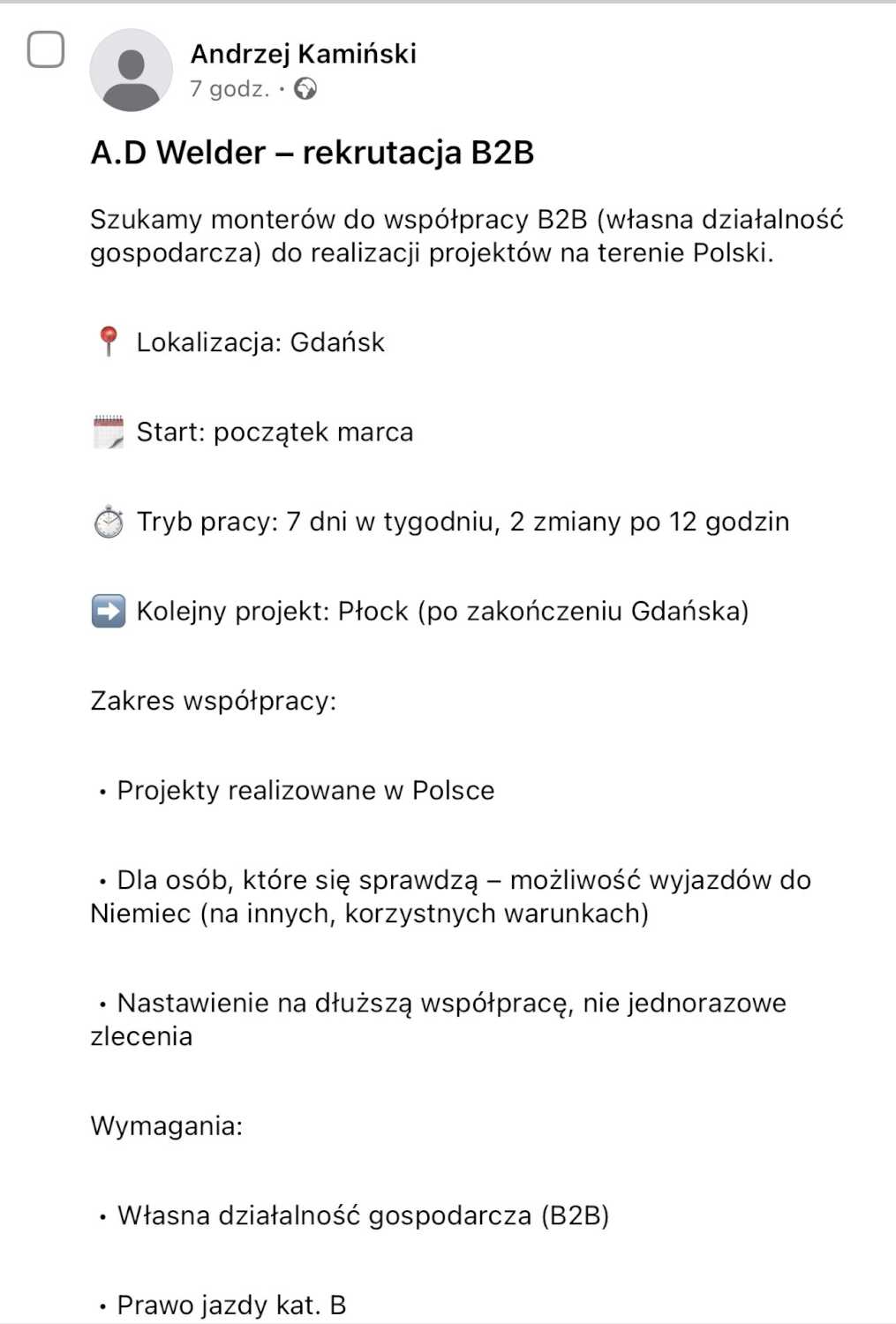 Szukamy monterów do współpracy B2B (własna działalność gospodarcza) do realizacji projektów na terenie Polski.