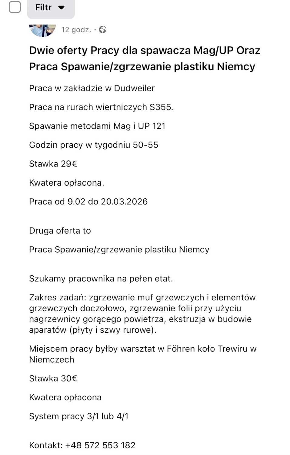 Dwie oferty Pracy dla spawacza Mag/UP Oraz Praca Spawanie/zgrzewanie plastiku Niemcy