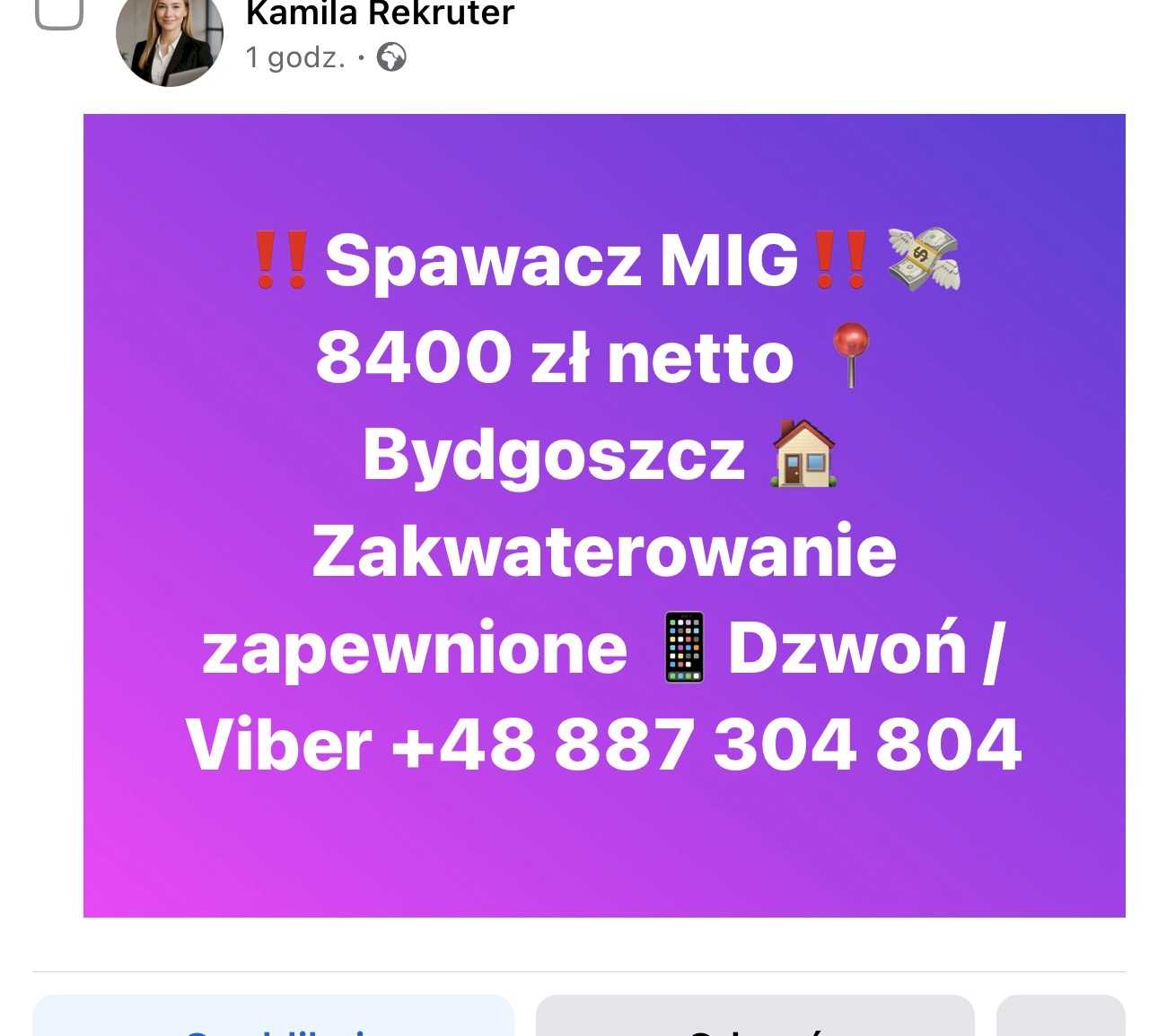 ‼️Spawacz MIG‼️💸 8400 zł netto 📍Bydgoszcz 🏠 Zakwaterowanie zapewnione 📱Dzwoń / Viber +48 887 304 804