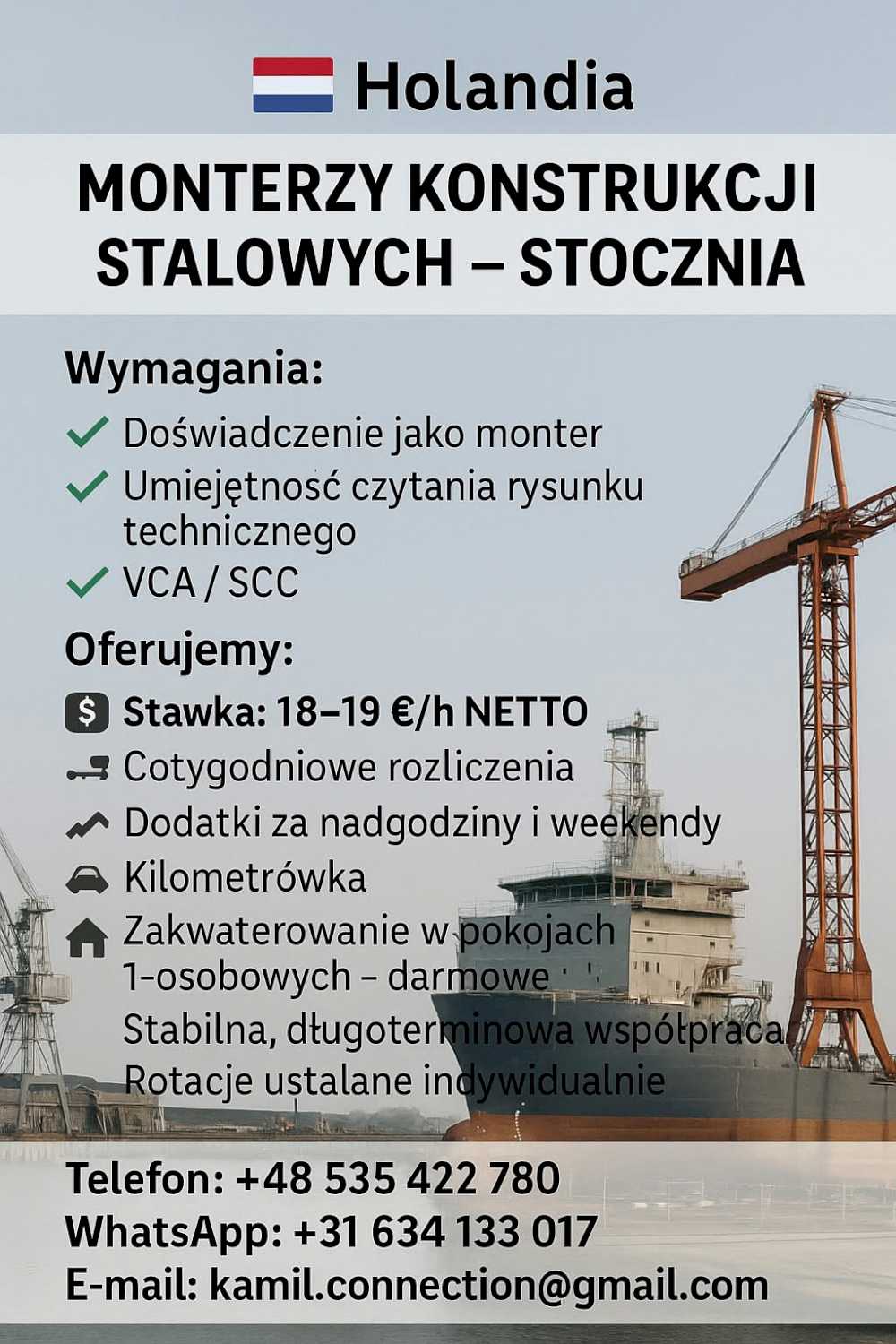 $ Stawka: 18-19 €/h NETTO