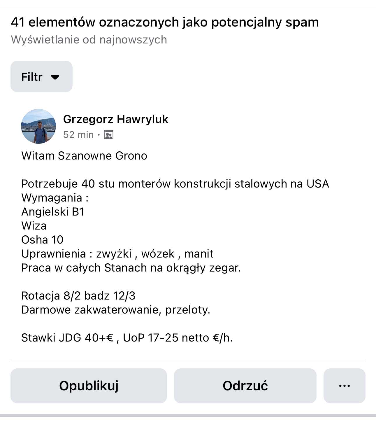 Potrzebuje 40 stu monterów konstrukcji stalowych na USA