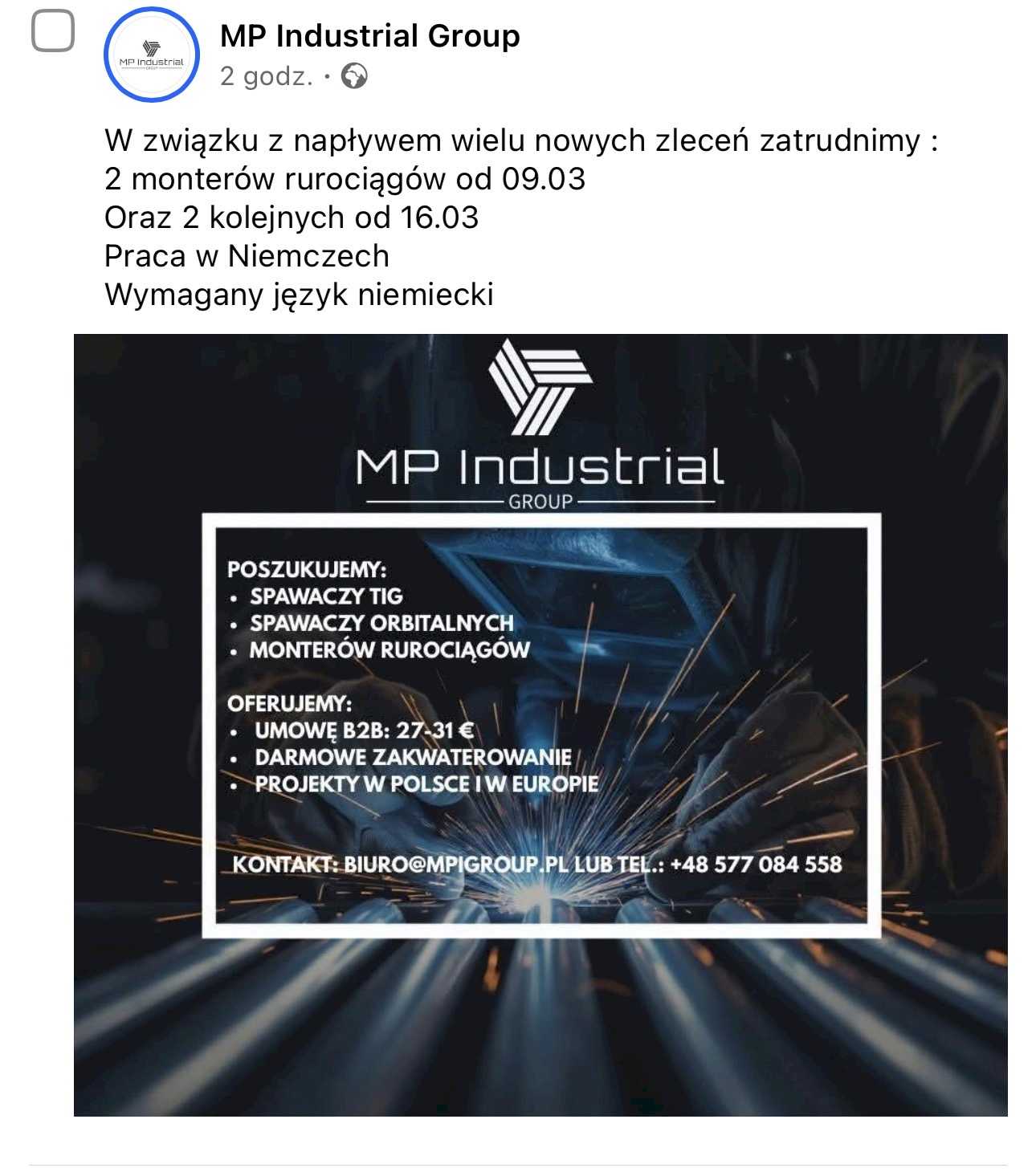 #monter #niemcy W związku z napływem wielu nowych zleceń zatrudnimy : 2 monterów rurociągów od 09.03 Oraz 2 kolejnych od 16.03 Praca w Niemczech Wymagany język niemiecki