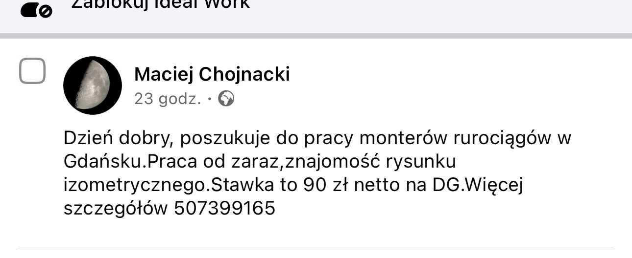 #monter #gdansk #polska Dzie艅 dobry, poszukuje do pracy monter贸w ruroci膮g贸w w Gda艅sku.Praca od zaraz,znajomo艣膰 rysunku izometrycznego.Stawka to 90 z艂 netto na DG.Wi臋cej szczeg贸艂贸w 507399165