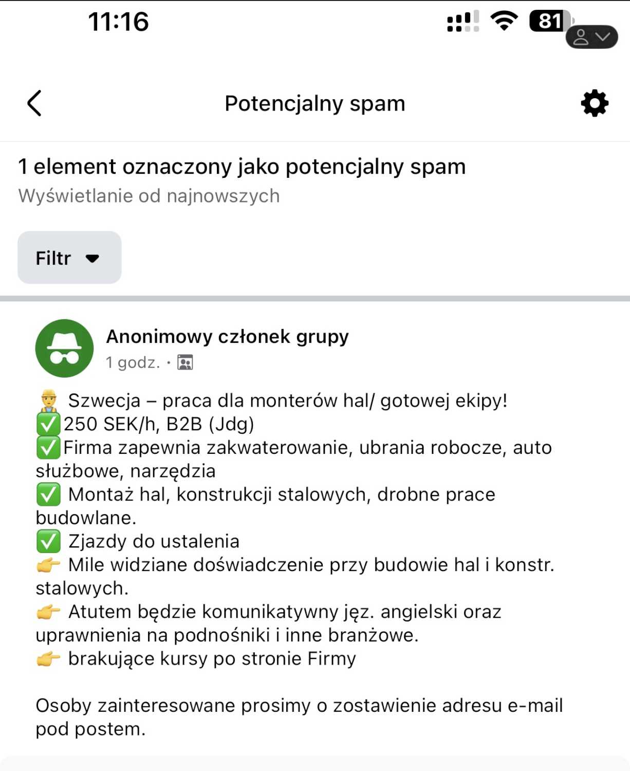 Osoby zainteresowane prosimy o zostawienie adresu e-mail pod postem.