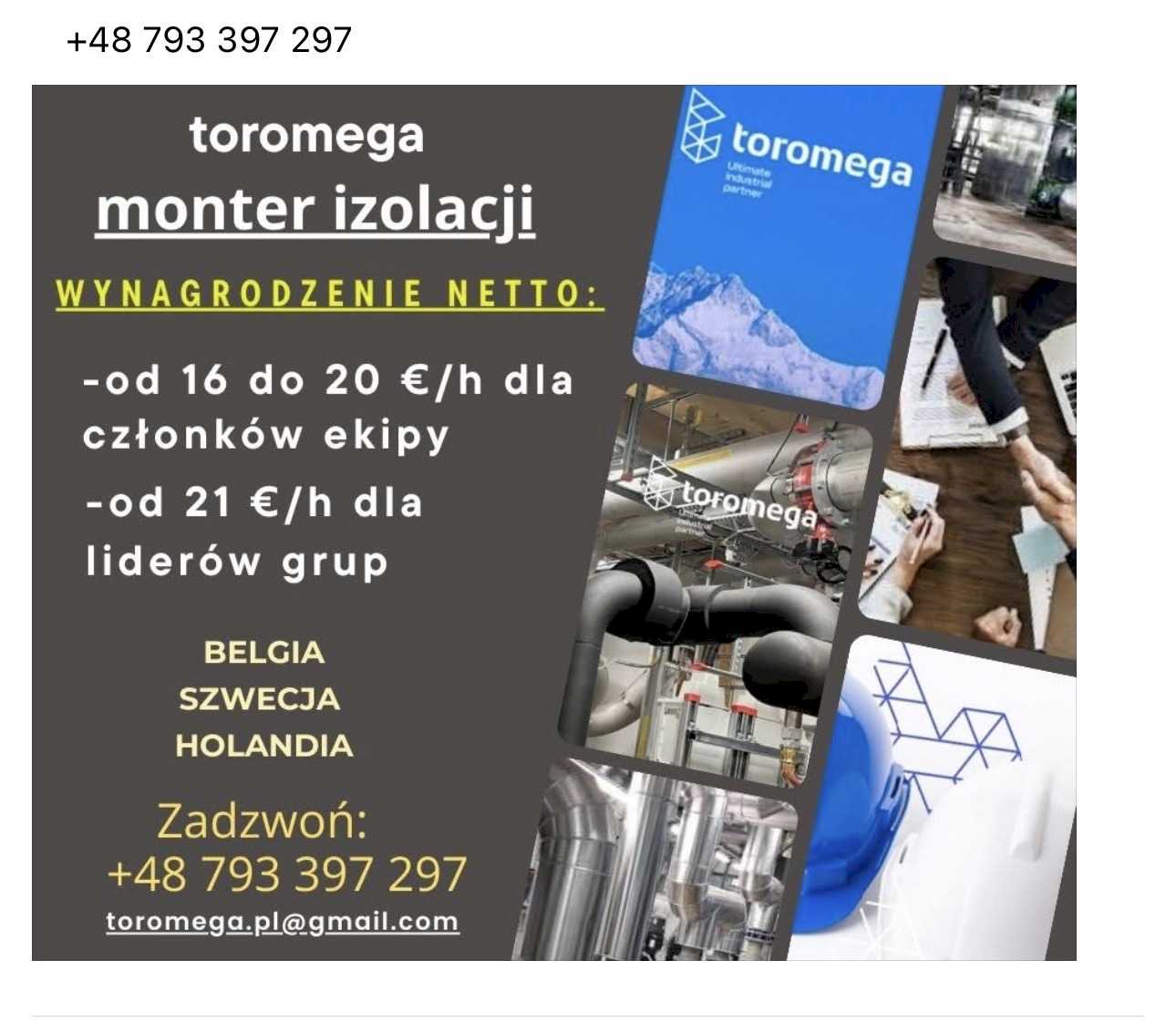 Toromega Polska Sp. z o.o. zatrudni Monterów izolacji