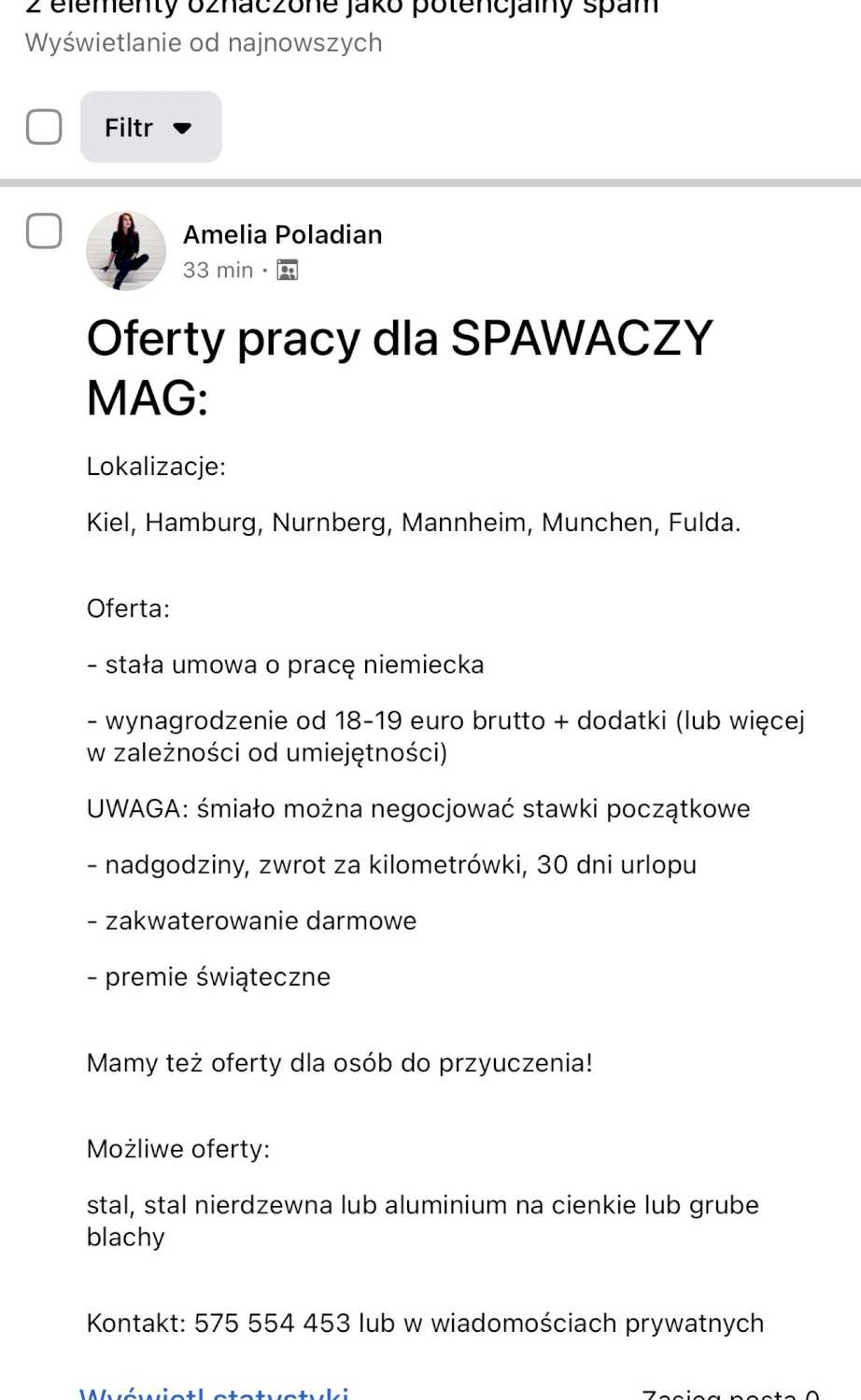 Kontakt: 575 554 453 lub w wiadomościach prywatnych